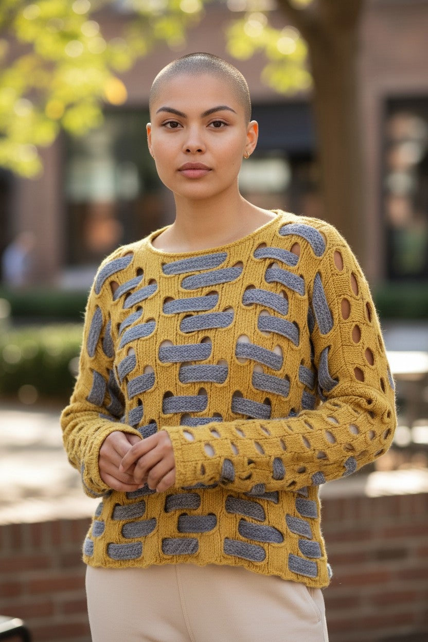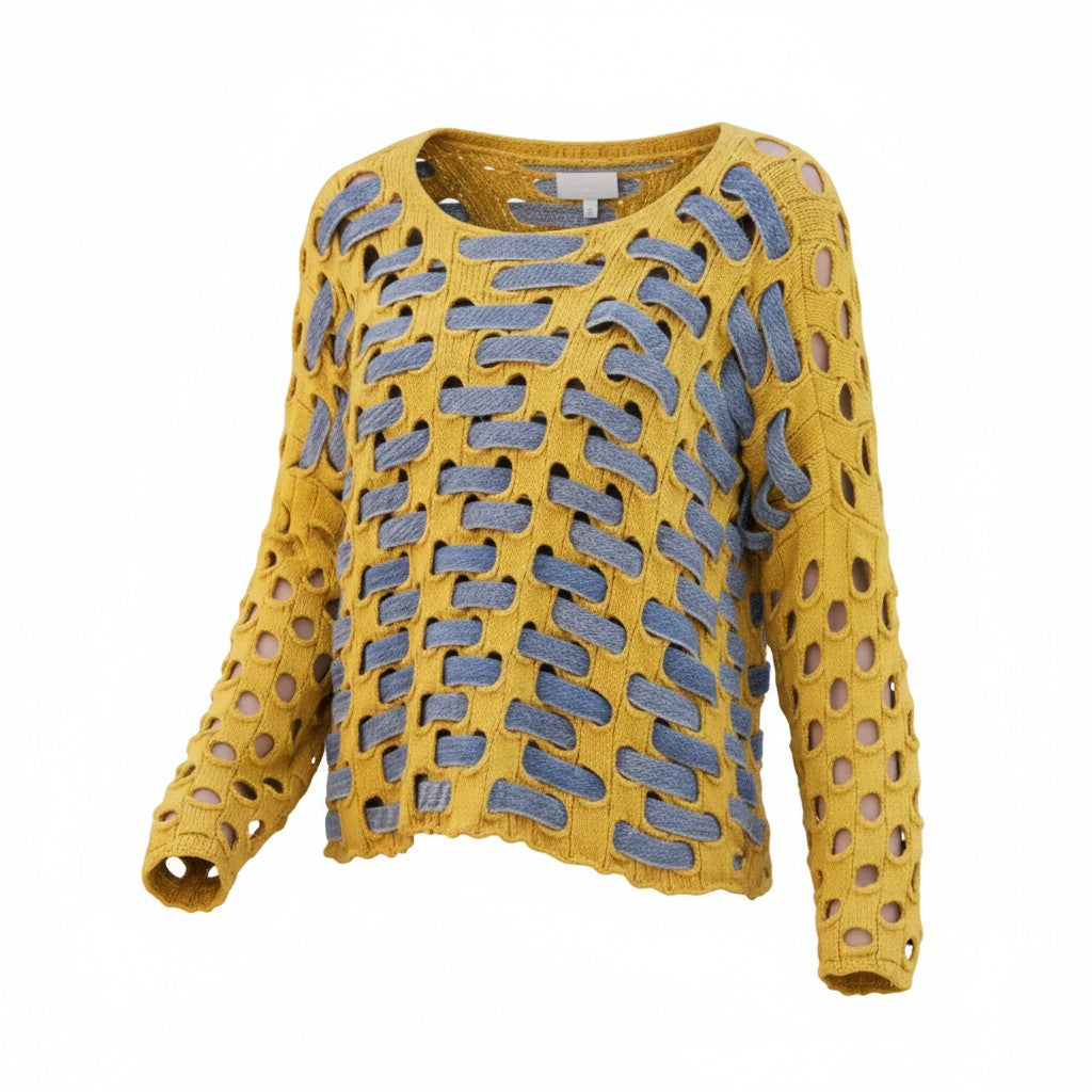Elevate your wardrobe with this distinctive Denim Pullover Sweater, where sustainable style meets modern design. Featuring recycled denim woven throughout, it delivers an unexpected edge to your everyday look. The relaxed, boxy silhouette paired with a classic round neckline and dropped shoulders creates an effortlessly cool aesthetic that works beautifully as a layering piece over tanks, camis, or tees. Whether you're seeking a statement piece that turns heads or a versatile layer that transitions seamlessly through seasons, this sweater combines eco-conscious craftsmanship with undeniable style appeal. Make it your go-to for that coveted, put-together vibe!